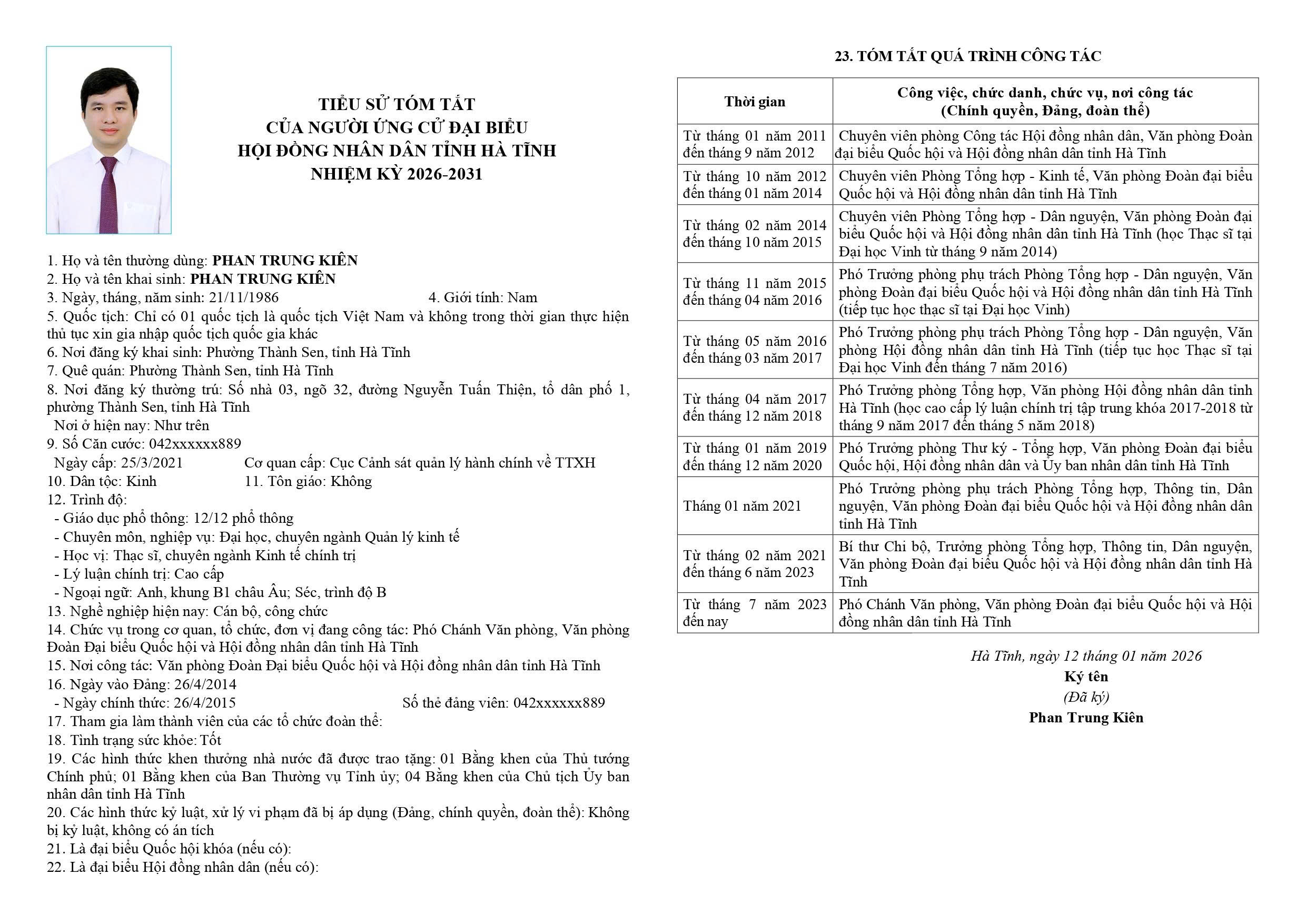 3. Phan Trung Kiên - Phó Chánh Văn phòng, Văn phòng Đoàn đại biểu Quốc hội và Hội đồng nhân dân tỉnh Hà Tĩnh