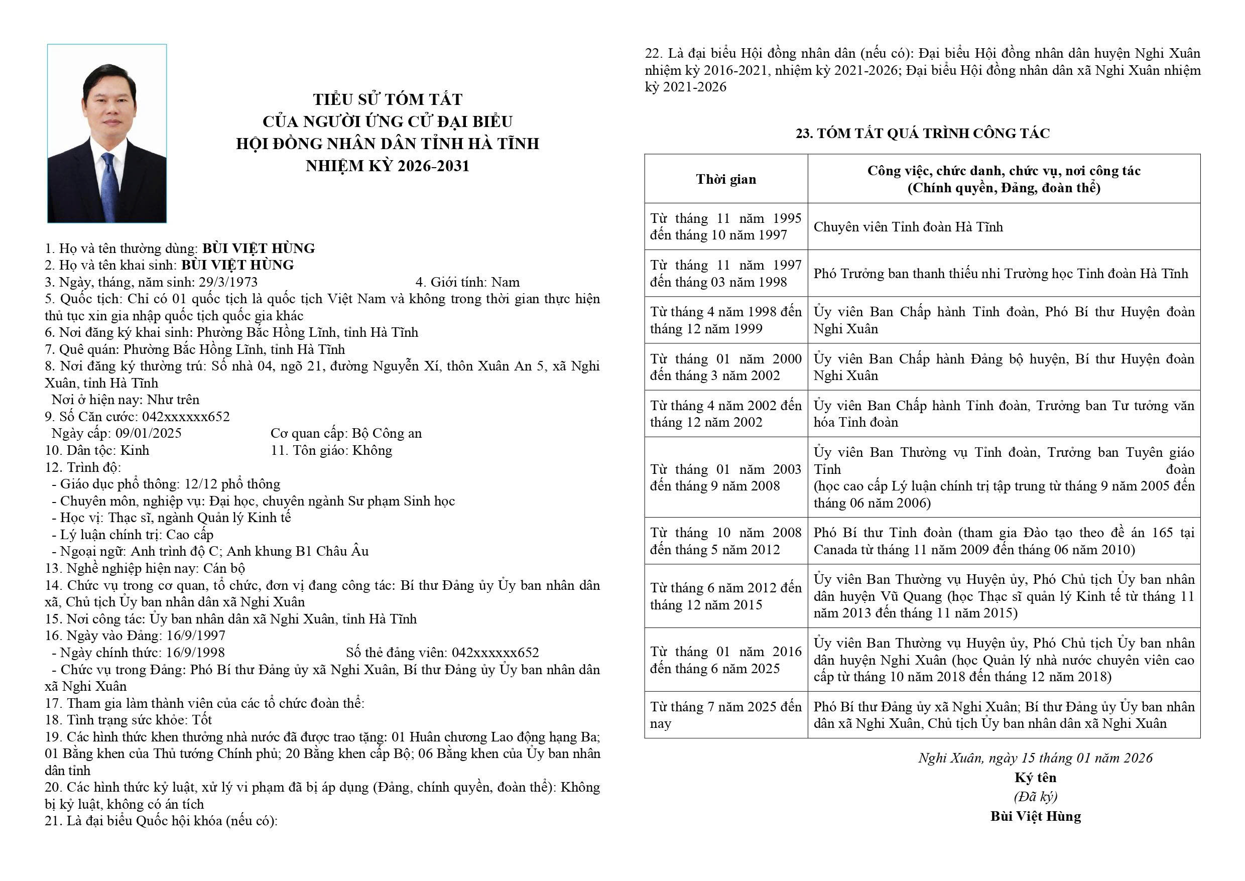 2. Bùi Việt Hùng - Phó Bí thư Đảng ủy xã Nghi Xuân; Bí thư Đảng ủy Ủy ban nhân dân xã Nghi Xuân, Chủ tịch Ủy ban nhân dân xã Nghi Xuân