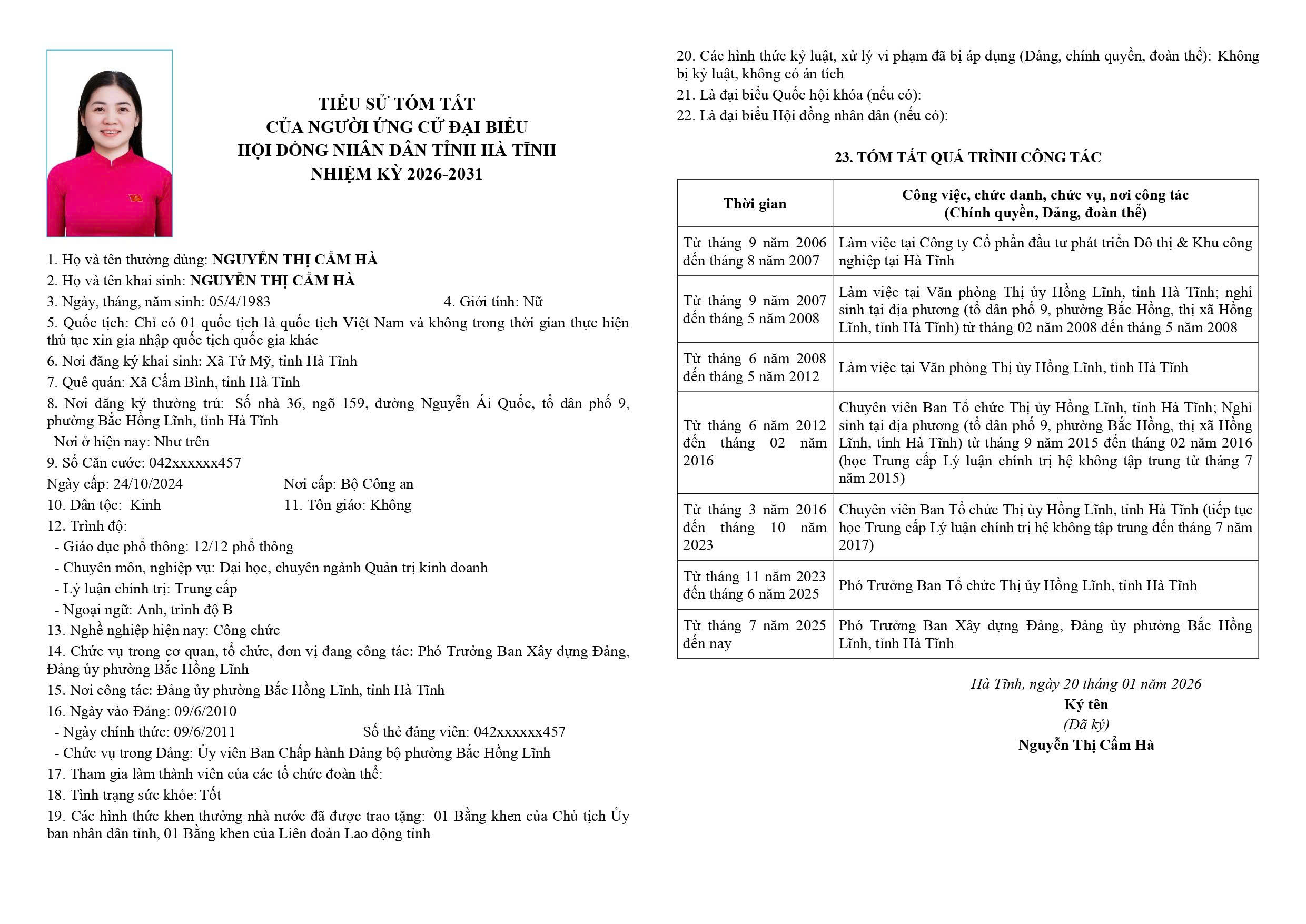 Danh sách chính thức người ứng cử đại biểu HĐND tỉnh khoá XIX tại Hà Tĩnh (Đơn vị bầu cử số 9)