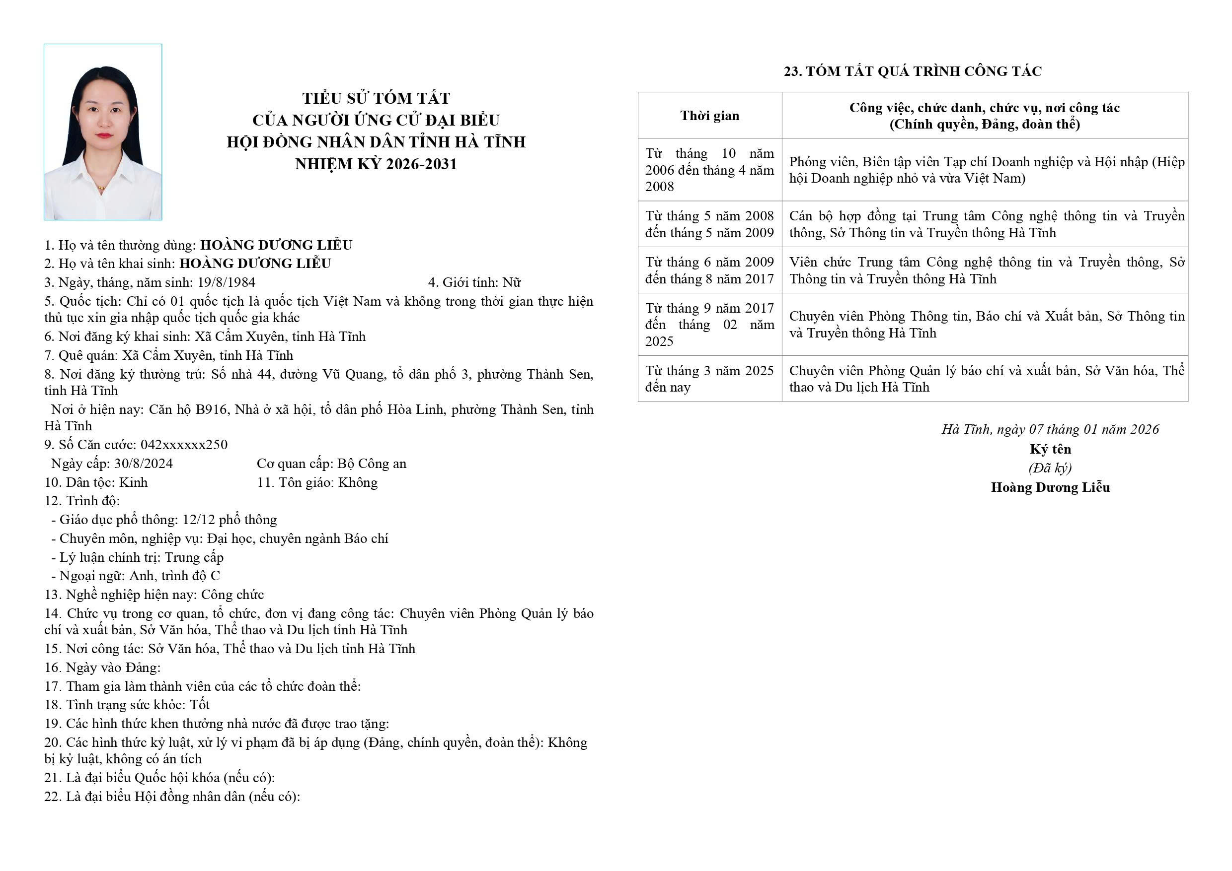 5. Hoàng Dương Liễu - Chuyên viên Phòng Quản lý báo chí và xuất bản, Sở Văn hóa, Thể thao và Du lịch Hà Tĩnh