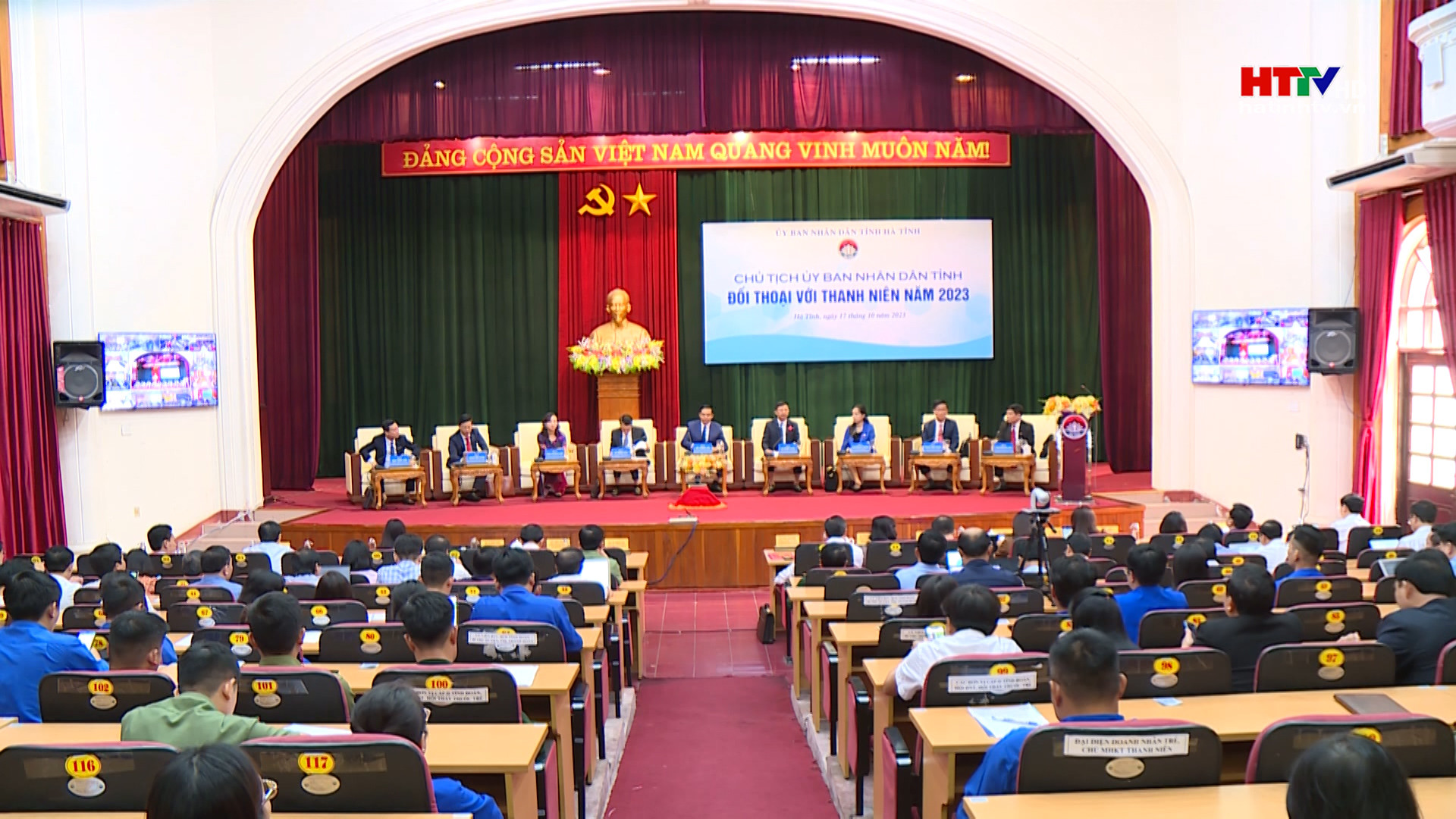 Chủ tịch UBND tỉnh Võ Trọng Hải cùng lãnh đạo một số sở ngành tham gia đối thoại với đoàn viên, thanh niên
