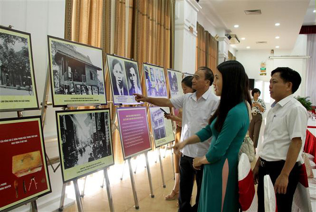 Các đại biểu tham quan những hình ảnh về cuộc đời sự nghiệp của Tổng Bí thư Lê Hồng Phong tại Hội thảo khoa học tôn vinh những đóng góp của Đồng chí Lê Hồng Phong đối với cách mạng Việt Nam.. Ảnh: Văn Tý-TTXVN
