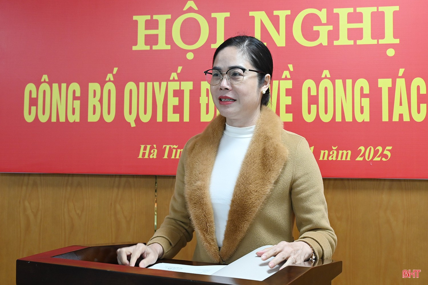 Phó trưởng ban Tổ chức Tỉnh ủy Nguyễn Thị Thanh Hồng công bố quyết định của Ban Thường vụ Tỉnh ủy.