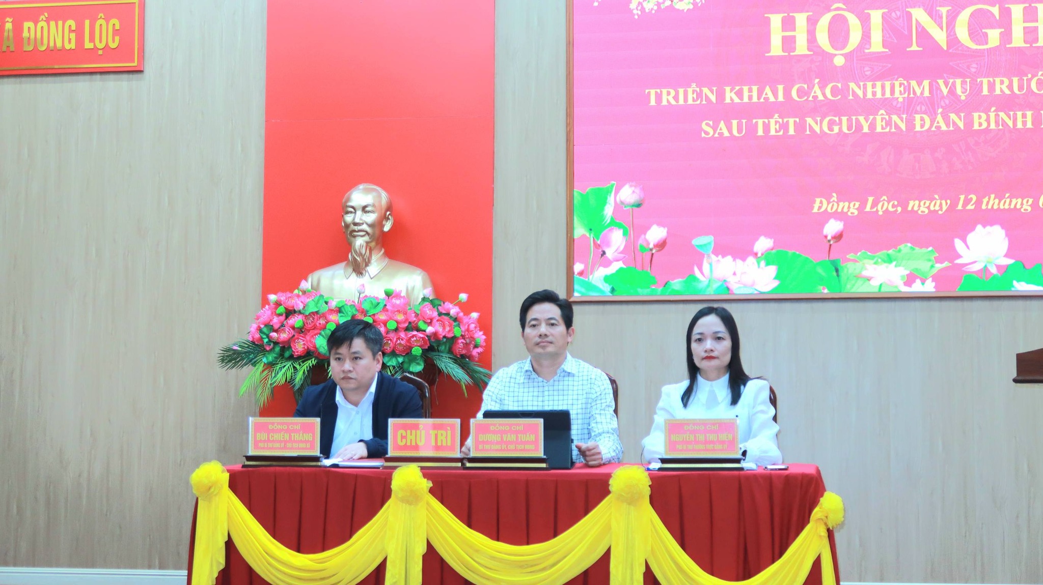 Đồng chí Dương Văn Tuấn – Bí thư Đảng ủy, Chủ tịch HĐND xã; Nguyễn Thị Thu Hiền – Phó Bí thư Thường trực Đảng ủy; Bùi Chiến Thắng – Chủ tịch UBND xã chủ trì hội nghị. Cùng tham dự có các đồng chí trong Ban Thường vụ Đảng ủy, Thường trực HĐND, lãnh đạo UBND, Thường trực Ủy ban MTTQ xã; trưởng, phó các ban, ngành, đoàn thể; bí thư chi bộ, trưởng thôn cùng toàn thể cán bộ, công chức, viên chức, người lao động trên địa bàn.