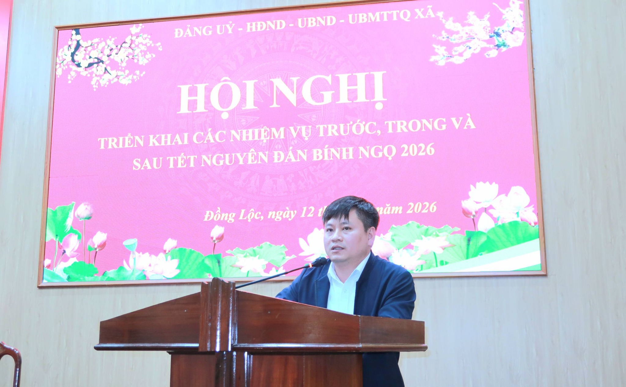 Phát biểu kết luận hội nghị, đồng chí Dương Văn Tuấn – Bí thư Đảng ủy, Chủ tịch HĐND xã yêu cầu các cấp ủy, chi bộ, cơ quan, đơn vị nêu cao tinh thần trách nhiệm, bám sát nhiệm vụ được giao, thực hiện nghiêm phương châm “vui Xuân mới không quên nhiệm vụ”. Trong đó, tập trung lãnh đạo, chỉ đạo chặt chẽ công tác bầu cử, bảo đảm đúng tiến độ, đúng quy trình, đúng pháp luật, dân chủ, an toàn và tiết kiệm; đồng thời chăm lo để Nhân dân đón Tết Bính Ngọ 2026 vui tươi, đầm ấm, nghĩa tình.