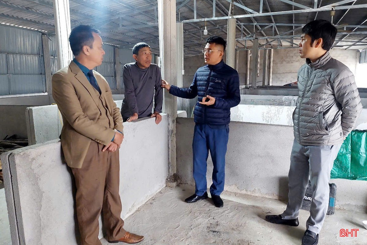 Cán bộ Chi cục Trồng trọt và chăn nuôi Hà Tĩnh hướng dẫn bà con phương pháp chăn nuôi theo hướng an toàn sinh học.