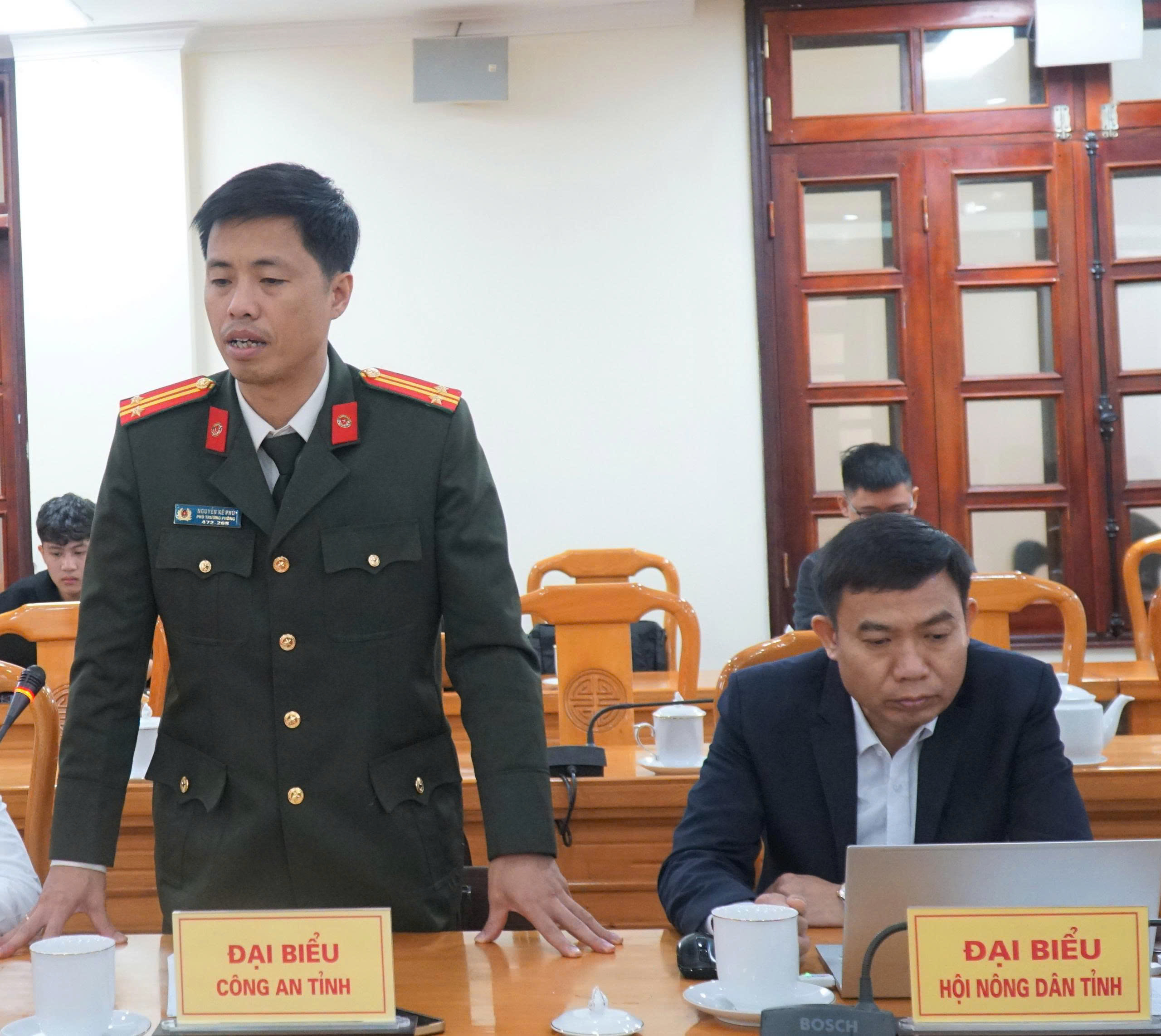 Đại diện Công an tỉnh đề nghị tăng cường công tác tuyên truyền, nâng cao ý thức chấp hành pháp luật của người dân, nhất là các hộ kinh doanh, trong phòng, chống dịch bệnh và quản lý hoạt động giết mổ, nhằm hạn chế nguy cơ lây lan dịch bệnh, bảo đảm an toàn môi trường
