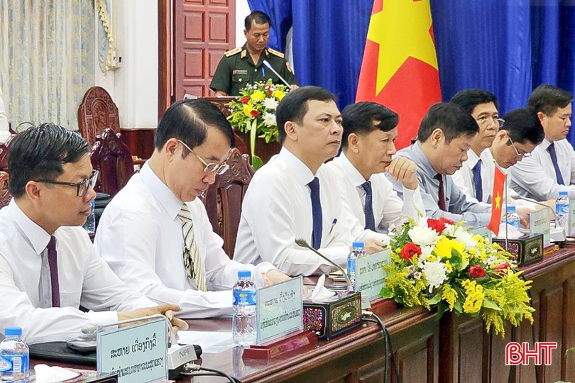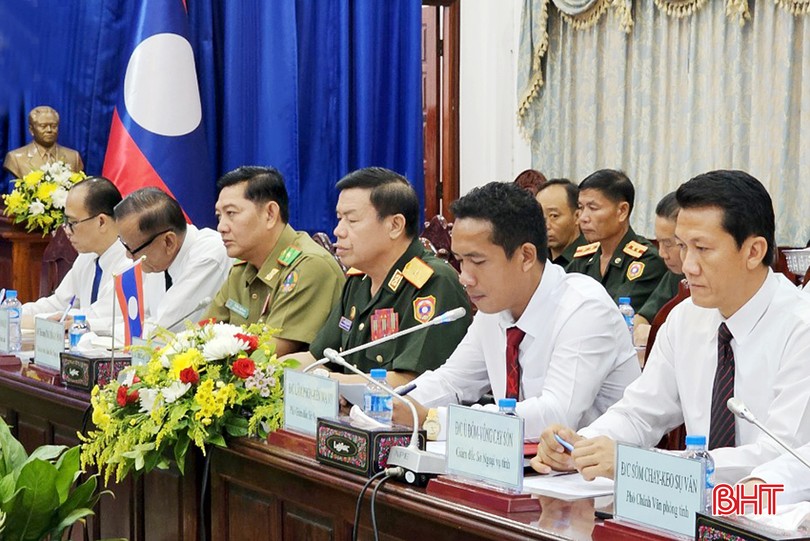 Đồng chí Lê Ngọc Châu - Phó Chủ tịch UBND tỉnh Hà Tĩnh, Trưởng ban Chỉ đạo 515 tỉnh Hà Tĩnh và Thiếu tướng Chuông Chăn Lạt Sạ Vông - Ủy viên BTV Tỉnh ủy, Chính ủy Bộ Chỉ huy Quân sự, Phó Trưởng ban Công tác đặc biệt tỉnh Bolikhămxay chủ trì buổi hội đàm.