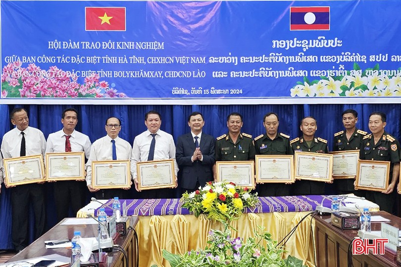 Cũng tại buổi hội đàm, lãnh đạo 2 địa phương đã trao bằng khen cho các tập thể, cá nhân tỉnh Bolikhămxay và Hà Tĩnh có thành tích xuất sắc trong công tác phối hợp khảo sát, tìm kiếm, quy tập hài cốt liệt sỹ mùa khô năm 2023 – 2024.
