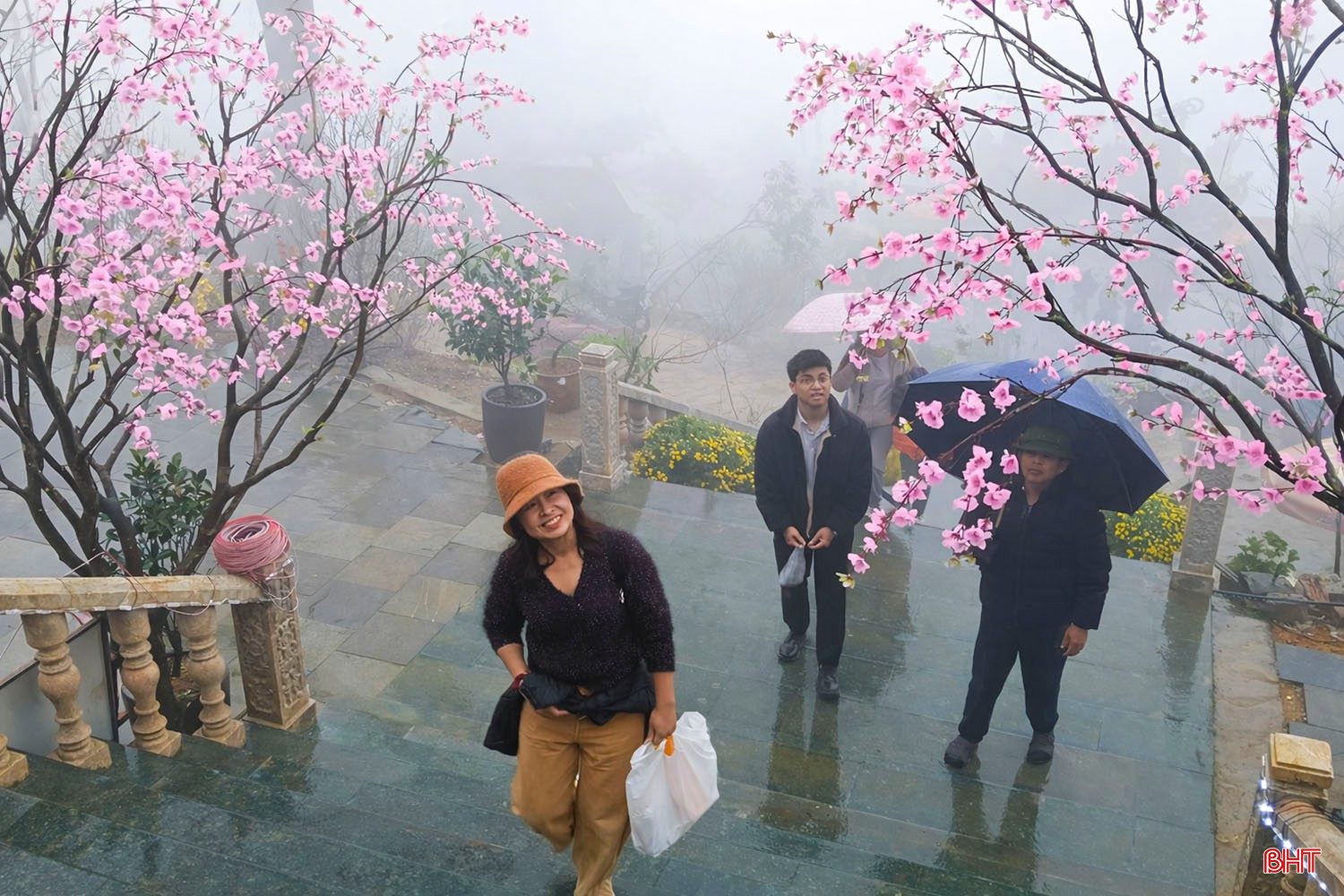 Niềm hân hoan của du khách khi chứng kiến không khí mùa xuân ngập tràn bên ngôi cổ tự, trên đỉnh non Hồng.