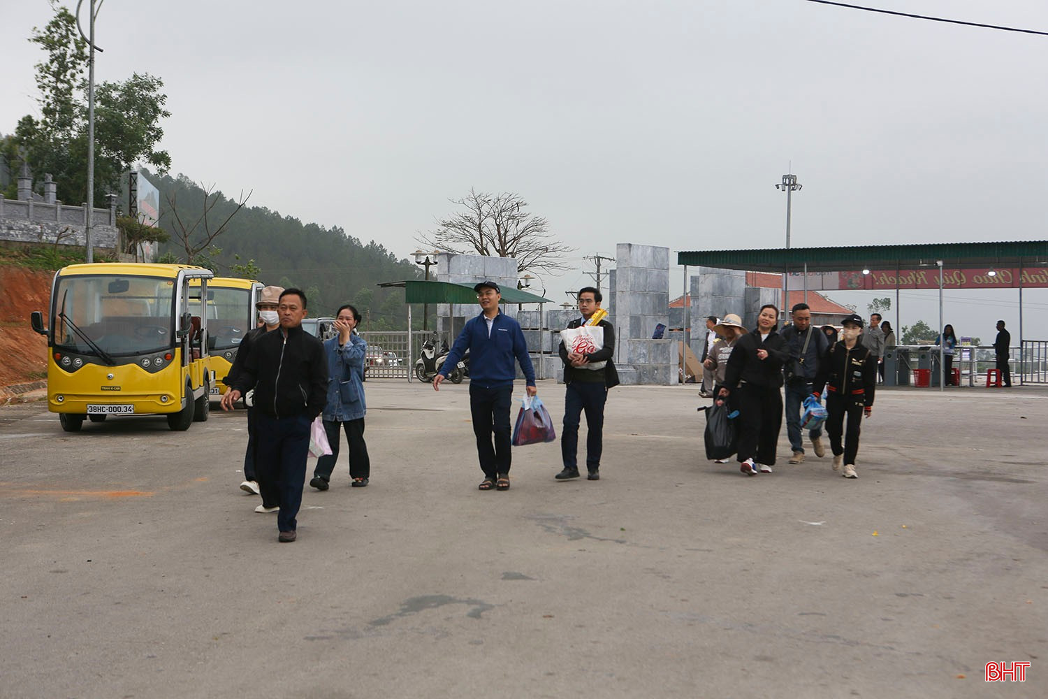 Từ cổng soát vé đến bến xe điện, dòng người nối nhau lên đỉnh núi Hồng, khám phá "Hoan Châu đệ nhất danh lam".