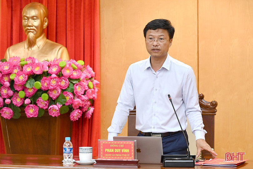 Tại điểm cầu Hà Tĩnh, Chánh Văn phòng Tỉnh ủy Phan Duy Vĩnh đề nghị các đơn vị, địa phương trong quá trình triển khai, vận hành các hệ thống, phần mềm tiếp tục phát hiện những vấn đề bất cập và những yêu cầu của tiện ích mới, báo cáo Văn phòng Tỉnh ủy tổng hợp, báo cáo Trung ương tìm phương án xử lý kịp thời.