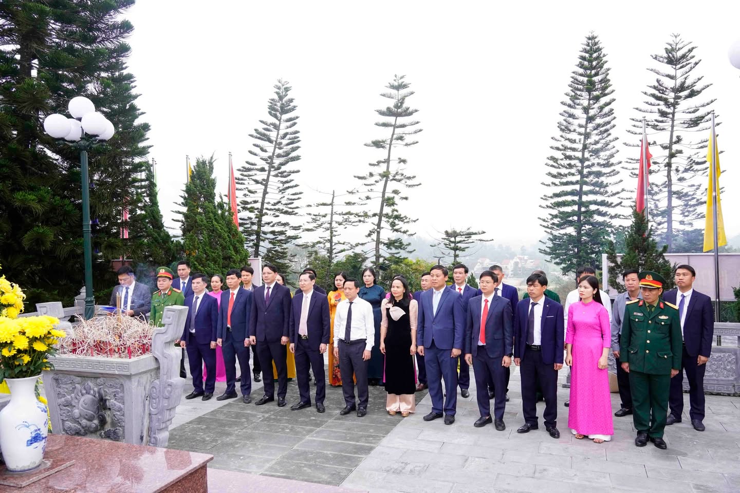 Tiếp đó, đoàn đến dâng hoa, dâng hương tại Nghĩa trang liệt sĩ Nầm. Trong phút mặc niệm trang nghiêm, các đại biểu bày tỏ lòng thành kính tưởng nhớ và biết ơn sâu sắc đối với các Anh hùng liệt sĩ đã anh dũng hy sinh vì sự nghiệp giải phóng dân tộc, thống nhất đất nước, bảo vệ Tổ quốc và làm nghĩa vụ quốc tế cao cả. Nghĩa trang hiện là nơi an nghỉ của hơn 1.200 liệt sĩ, trong đó có nhiều quân tình nguyện và chuyên gia Việt Nam từng tham gia thực hiện nghĩa vụ quốc tế tại nước bạn Lào.