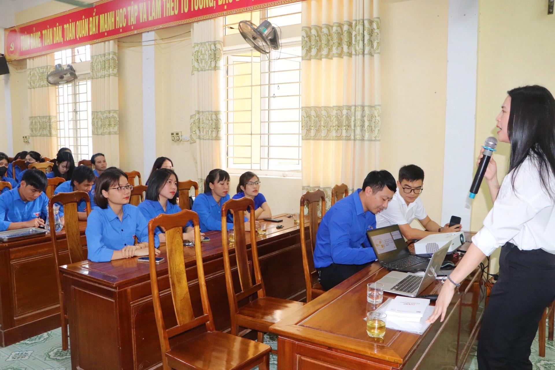 Tại hội nghị tập huấn gần 100 đoàn viên trong toàn huyện đã được các đồng chí đến từ Sở Thông tin và Truyền thông tỉnh giới thiệu về dịch vụ công trực tuyến; Đảm bảo thông tin khi tham gia mạng xã hội; Kiến thức chung về chuyển đổi số trong xây dựng NTM và hướng tới NTM thông minh; Ứng dụng chuyển đổi số trong các mô hình kinh tế thanh niên.