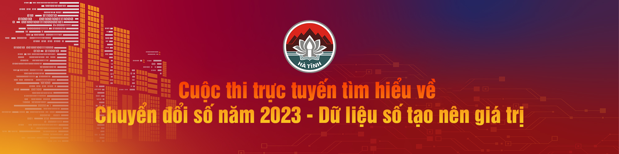 Cuộc thi trực tuyến tìm hiểu về “Chuyển đổi số - Dữ liệu số tạo nên giá trị” năm 2023 (theo Thể lệ của Ban Tổ chức) được tổ chức trên Cổng Thông tin điện tử tỉnh Hà Tĩnh tại địa chỉ: https://hatinh.gov.vn
