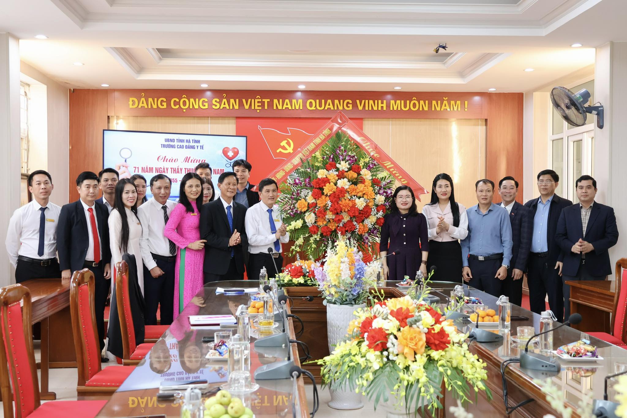 Phó Chủ tịch UBND tỉnh Nguyễn Thị Nguyệt cùng đoàn tặng hoa, chúc mừng Trường Cao đẳng Y tế Hà Tĩnh...