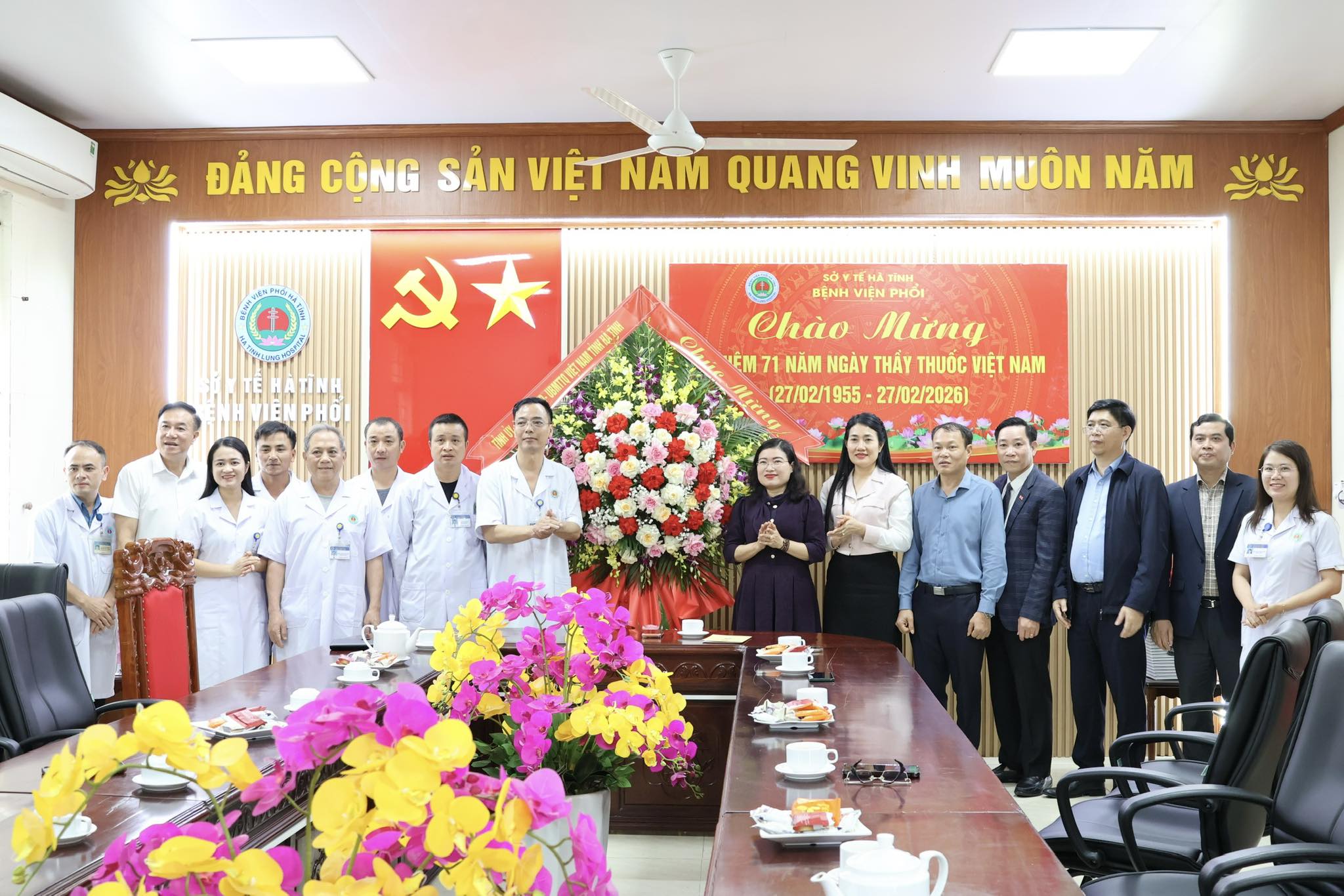 Nhân dịp kỷ niệm 71 năm Ngày Thầy thuốc Việt Nam (27/2/1955 - 27/2/2026), chiều 25/2, Phó Chủ tịch UBND tỉnh Nguyễn Thị Nguyệt dẫn đầu đoàn; cùng tham dự có đại diện Ban Tuyên giáo và Dân vận Tỉnh ủy; Ủy ban Mặt trận Tổ quốc tỉnh, Văn phòng UBND tỉnh, Sở Y tế tới chúc mừng cán bộ, nhân viên và đội ngũ y, bác sỹ các đơn vị: Trường Cao đẳng Y tế, Bệnh viện Y học cổ truyền Hà Tĩnh, Bệnh viện Sức khỏe tâm thần Hà Tĩnh, Bệnh viện Phổi Hà Tĩnh, Bệnh viện Mắt Hà Tĩnh. Phó Chủ tịch HĐND tỉnh Nguyễn Thị Việt Hà và Phó Bí thư Đảng ủy UBND tỉnh Trần Mạnh Hùng cùng dự.