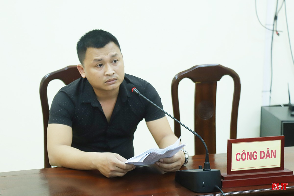 Ông Phan Văn Lục (xã Thạch Trung, TP Hà Tĩnh) đề nghị giải quyết các nội dung liên quan đến đất đai và đã được đại diện UBND TP Hà Tĩnh giải thích, làm rõ. Các đồng chí chủ trì giao các sở, ngành liên quan soát xét, tham mưu hướng giải quyết cho công dân đảm bảo quy định pháp luật.
