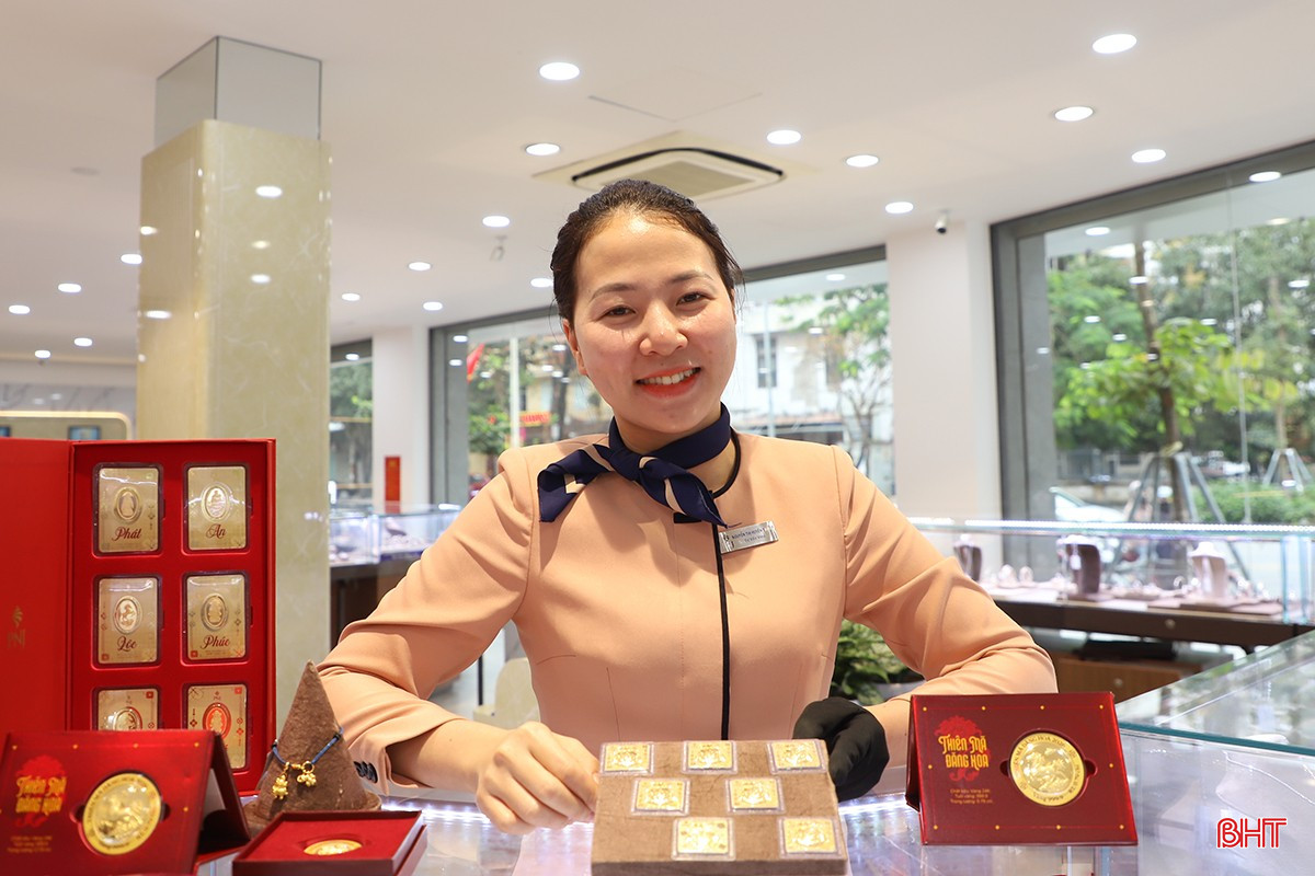 Trước thềm ngày vía Thần Tài, không khí mua bán vàng tại Hà Tĩnh trở nên nhộn nhịp. Không chỉ gia tăng về lượng khách, các cửa hàng còn tung ra nhiều sản phẩm thiết kế bắt mắt, mẫu mã đa dạng, đáp ứng nhu cầu mua vàng cầu may đầu năm của người dân.