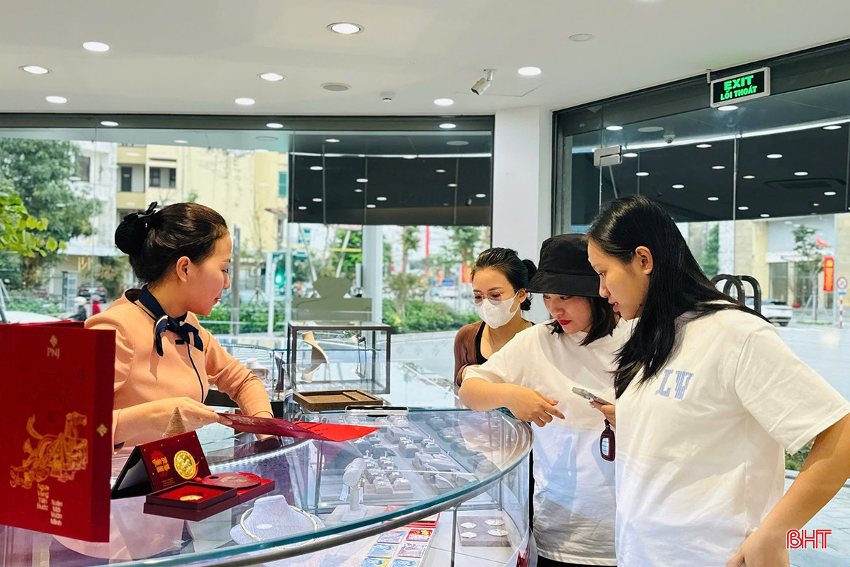 Nhằm phục vụ nhu cầu mua vàng ngày vía Thần Tài (mùng 10 tháng Giêng) của người dân, nhiều cửa hàng kinh doanh vàng bạc tại Hà Tĩnh đã nhập về các mẫu vàng ép vỉ hình linh vật ngựa, vàng miếng hình ông Thần Tài, nhẫn kim tiền… với thiết kế tinh xảo, mang ý nghĩa tài lộc, may mắn.
