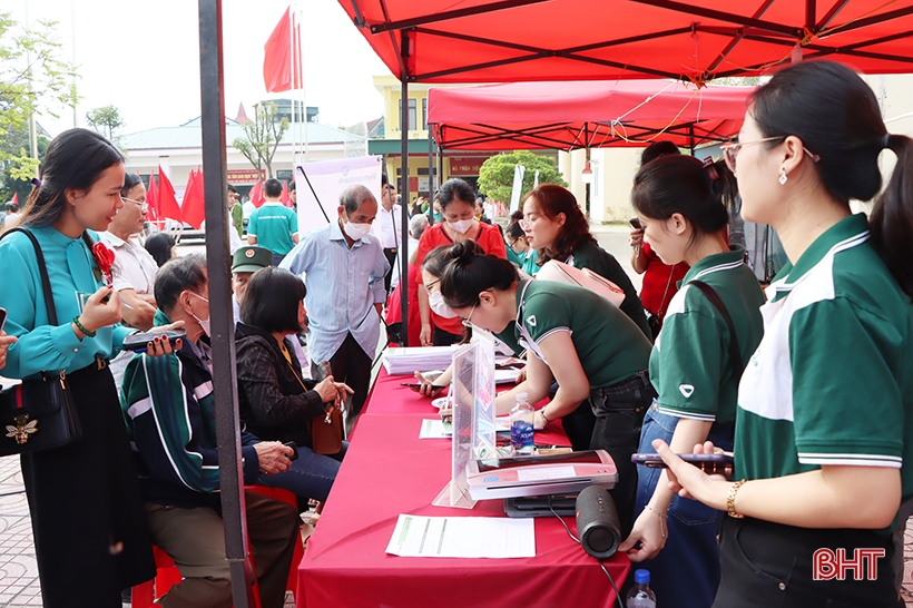 Theo đó, hàng trăm người dân trên địa bàn thị trấn Cẩm Xuyên và vùng lân cận được hỗ trợ các dịch vụ như: làm thẻ ngân hàng, ví điện tử để trả lương cho đối tượng chính sách, đối tượng hưu trí, tiền điện hỗ trợ hộ nghèo qua thẻ ngân hàng; thanh toán tiền điện, tiền nước, học phí, mua bán trao đổi giao dịch không sử dụng tiền mặt; cài đặt VSSID, rút hoặc nộp mới hồ sơ bảo hiểm xã hội; hướng dẫn các cá nhân, tập thể sản xuất kinh doanh nộp thuế điện tử theo hệ thống Etac.