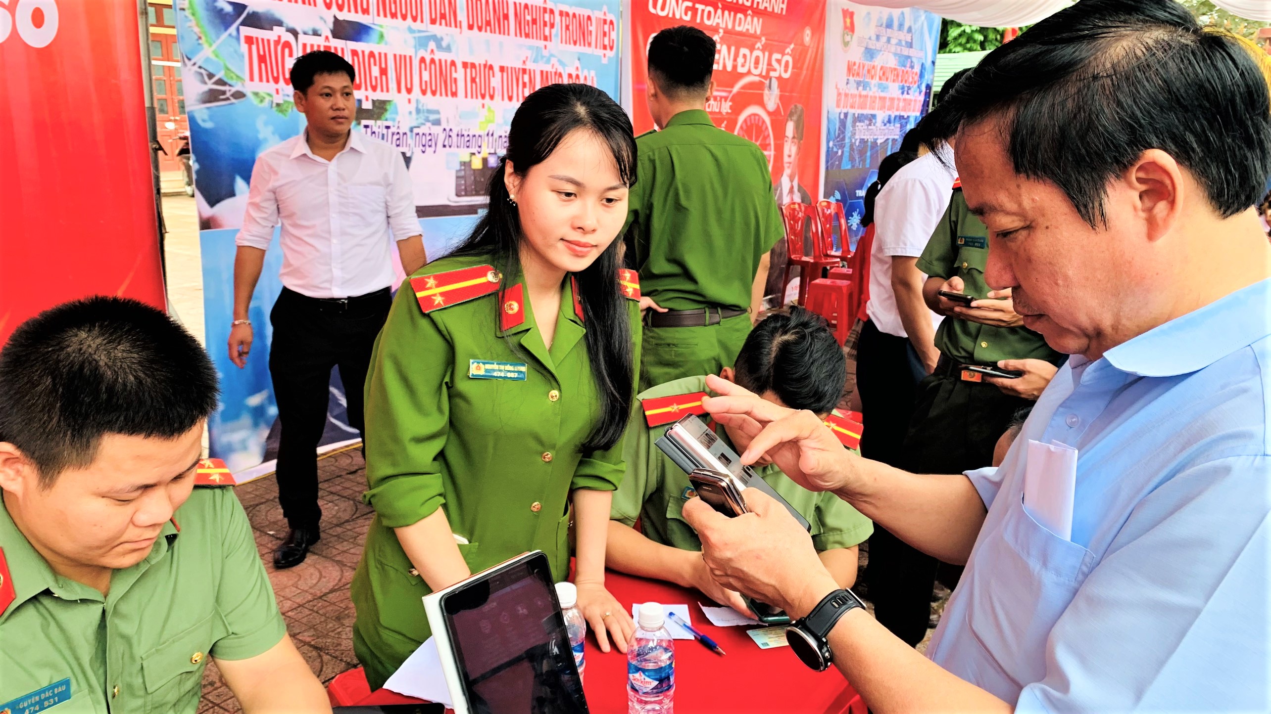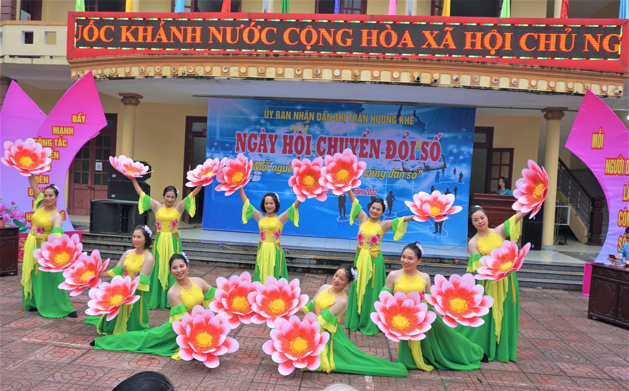 Người dân thị trấn Hương Khê sôi nổi tham gia ngày hội chuyển đổi số