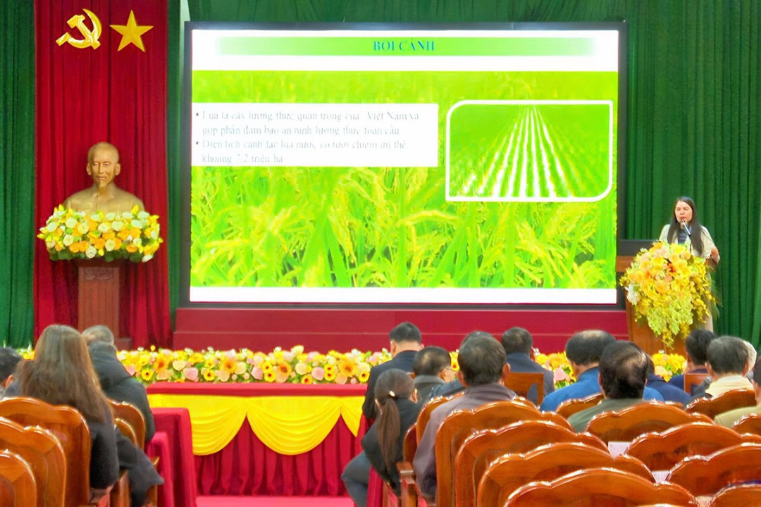 Xã Đông Kinh tập huấn thực hiện phương pháp tưới ngập - khô xen kẽ cho cán bộ chuyên môn và bà con nông dân.