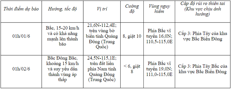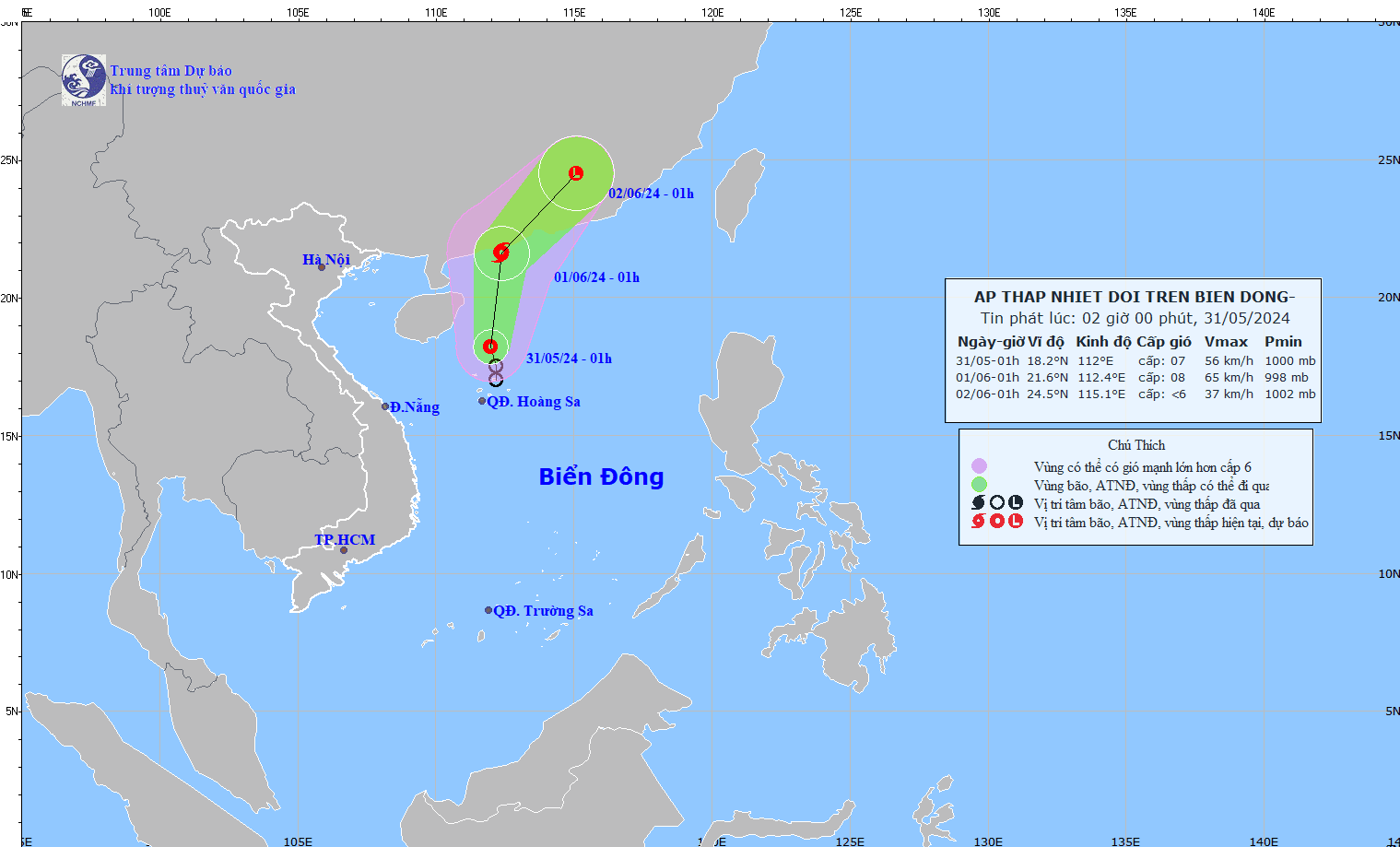 Hồi 1 giờ ngày 31/5, vị trí tâm áp thấp nhiệt đới ở vào khoảng 18,2 độ Vĩ Bắc; 112,0 độ Kinh Đông, trên khu vực phía Bắc quần đảo Hoàng Sa; sức gió mạnh nhất vùng gầ