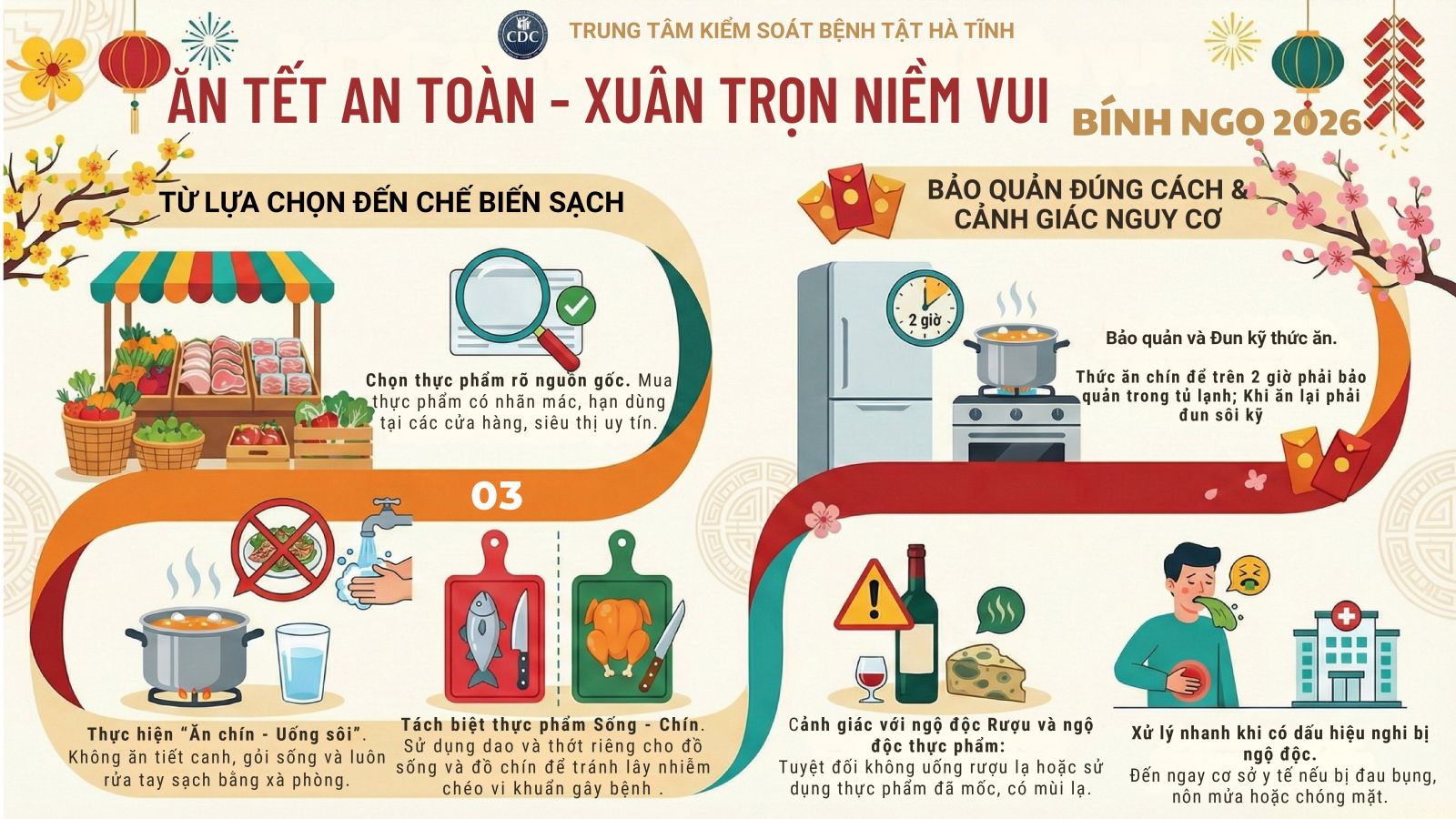 Thực hiện chỉ đạo của Bộ Y tế Việt Nam và Cục An toàn thực phẩm, Sở Y tế Hà Tĩnh đã ban hành văn bản yêu cầu các địa phương, đơn vị y tế trên địa bàn toàn tỉnh tăng cường công tác bảo đảm an toàn thực phẩm (ATTP) trong dịp Tết Nguyên đán và Lễ hội Xuân năm 2026.