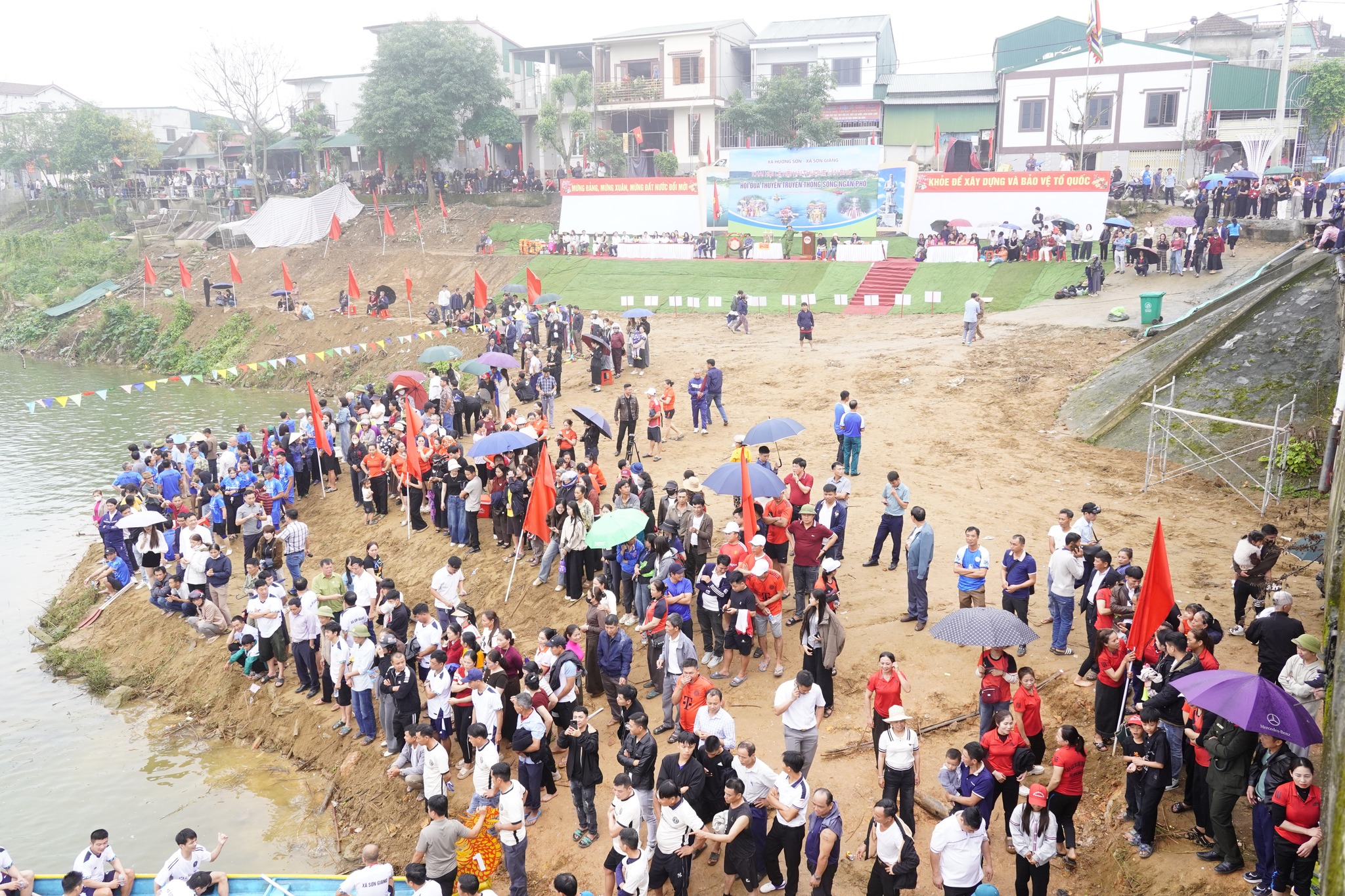 Dọc hai bên bờ sông, hàng nghìn người dân và du khách tập trung cổ vũ. Tiếng trống thúc giục hòa cùng tiếng reo hò tạo nên bầu không khí náo nhiệt, rộn ràng. Hội đua thuyền không chỉ là sân chơi thể thao mà còn là dịp gắn kết cộng đồng, khơi dậy niềm tự hào về truyền thống quê hương.