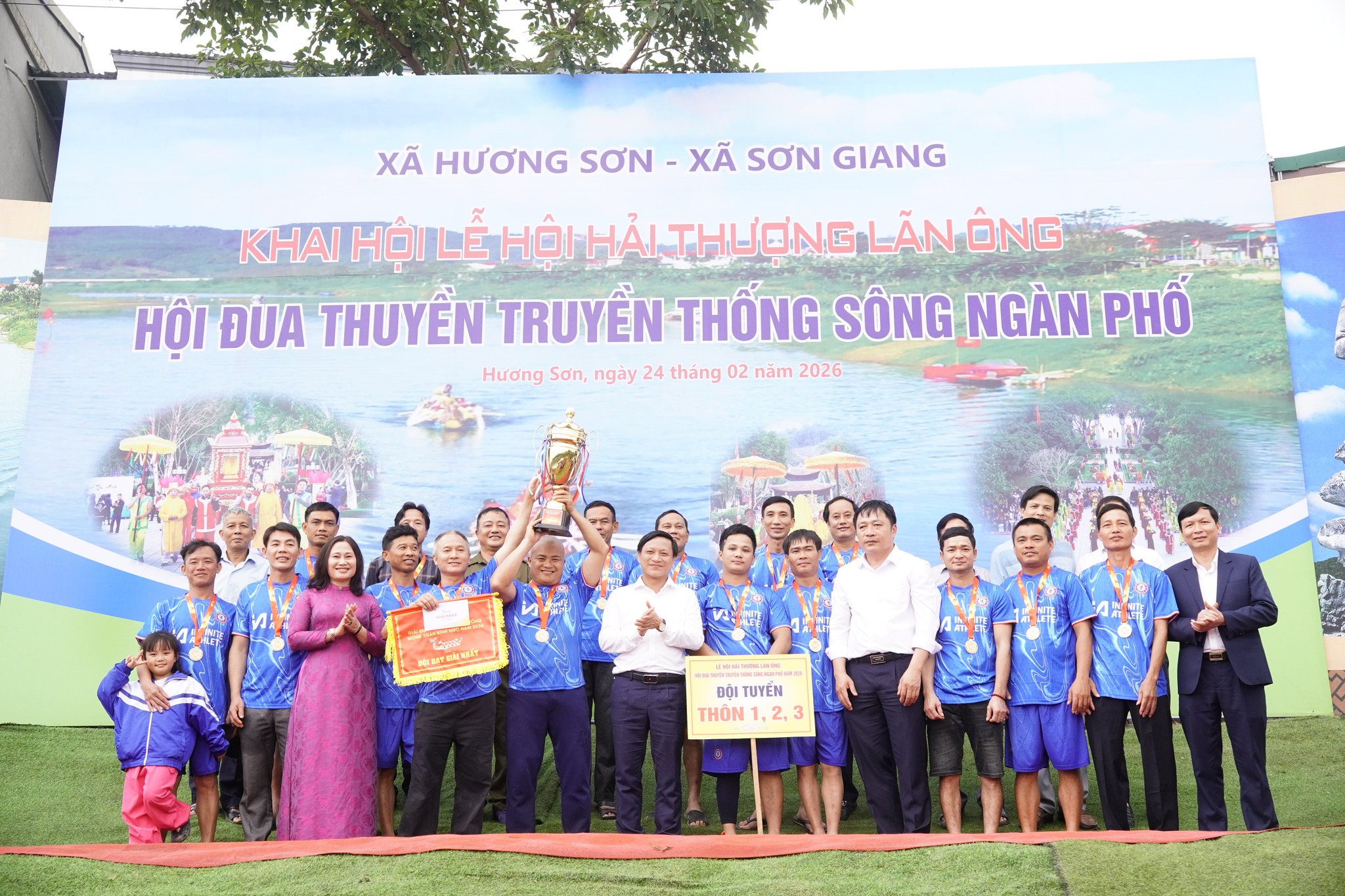 Sáng 24/2/2026, trong không khí rộn ràng những ngày đầu xuân, xã Hương Sơn phối hợp xã Sơn Giang long trọng tổ chức khai hội Lễ hội Hải Thượng Lãn Ông gắn với hội đua thuyền truyền thống trên sông Ngàn Phố. Sự kiện thu hút đông đảo đại biểu, Nhân dân và du khách thập phương, mở màn chuỗi hoạt động văn hóa – thể thao đặc sắc năm 2026.