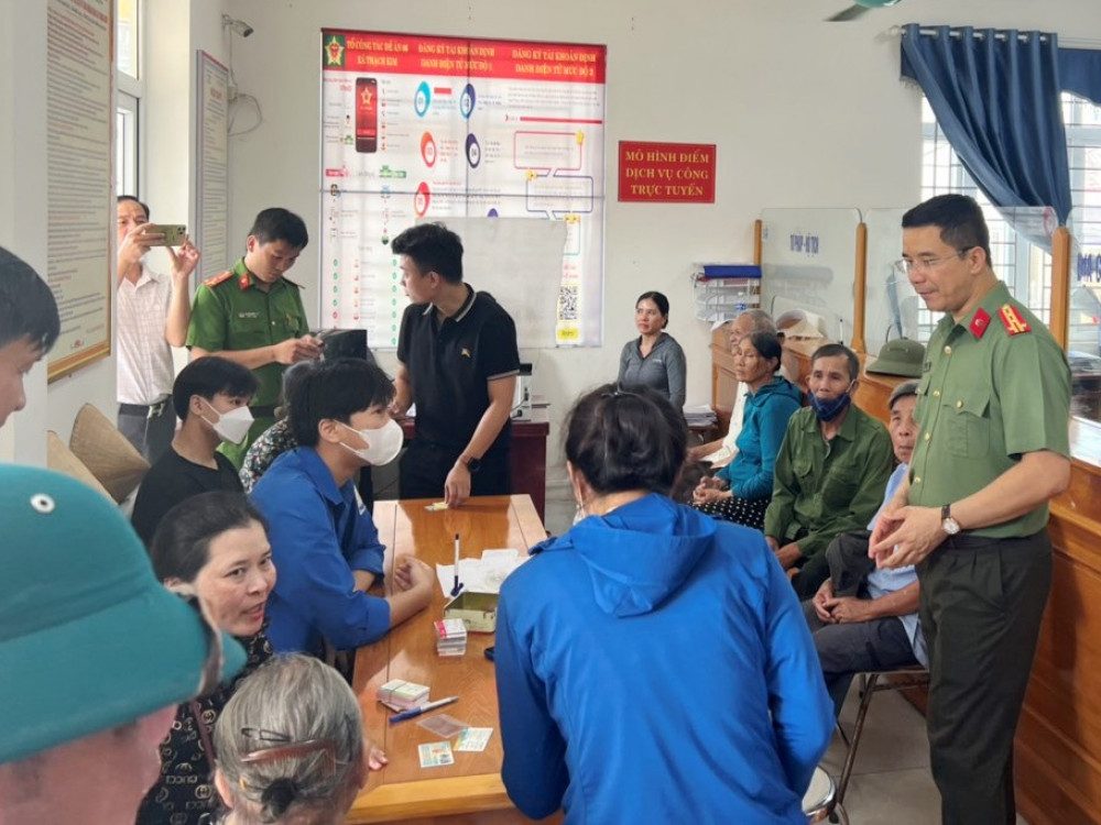 Đại tá Nguyễn Hồng Phong, Giám đốc Công an tỉnh trực tiếp đi kiểm tra công tác thực hiện nhiệm vụ Đề án 06 (Nguồn ảnh: CAHT)