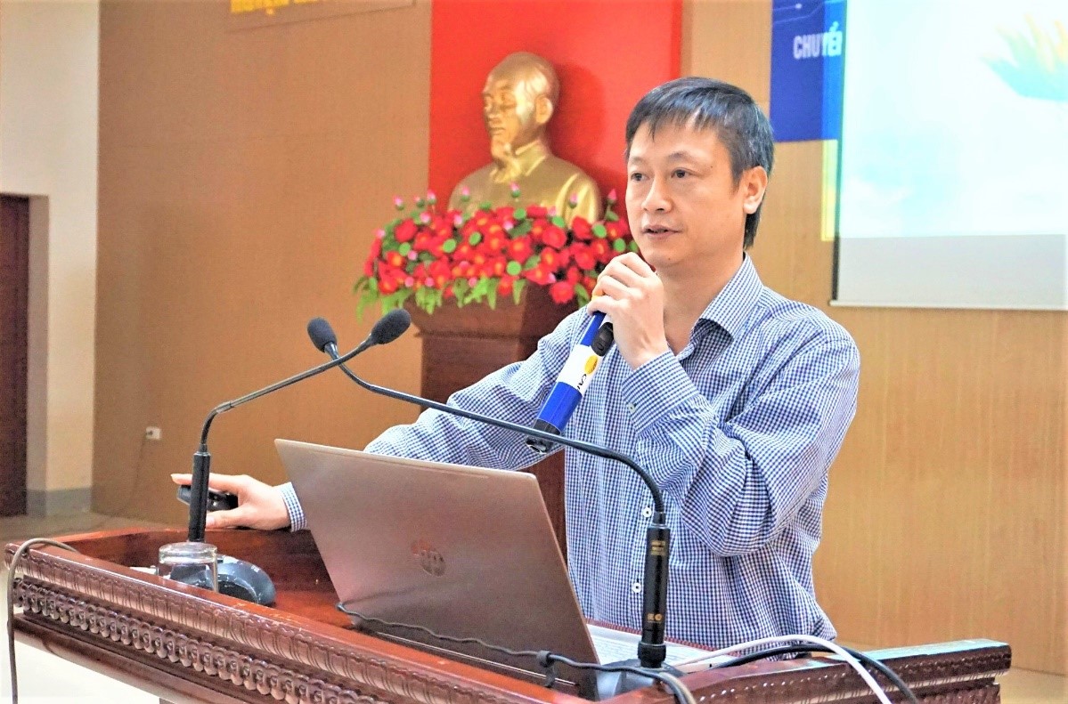 Đồng chí Đặng Văn Đức, Trưởng Phòng Công nghệ Thông tin và Bưu chính Viễn thông truyền đạt các nội dung tại hội nghị