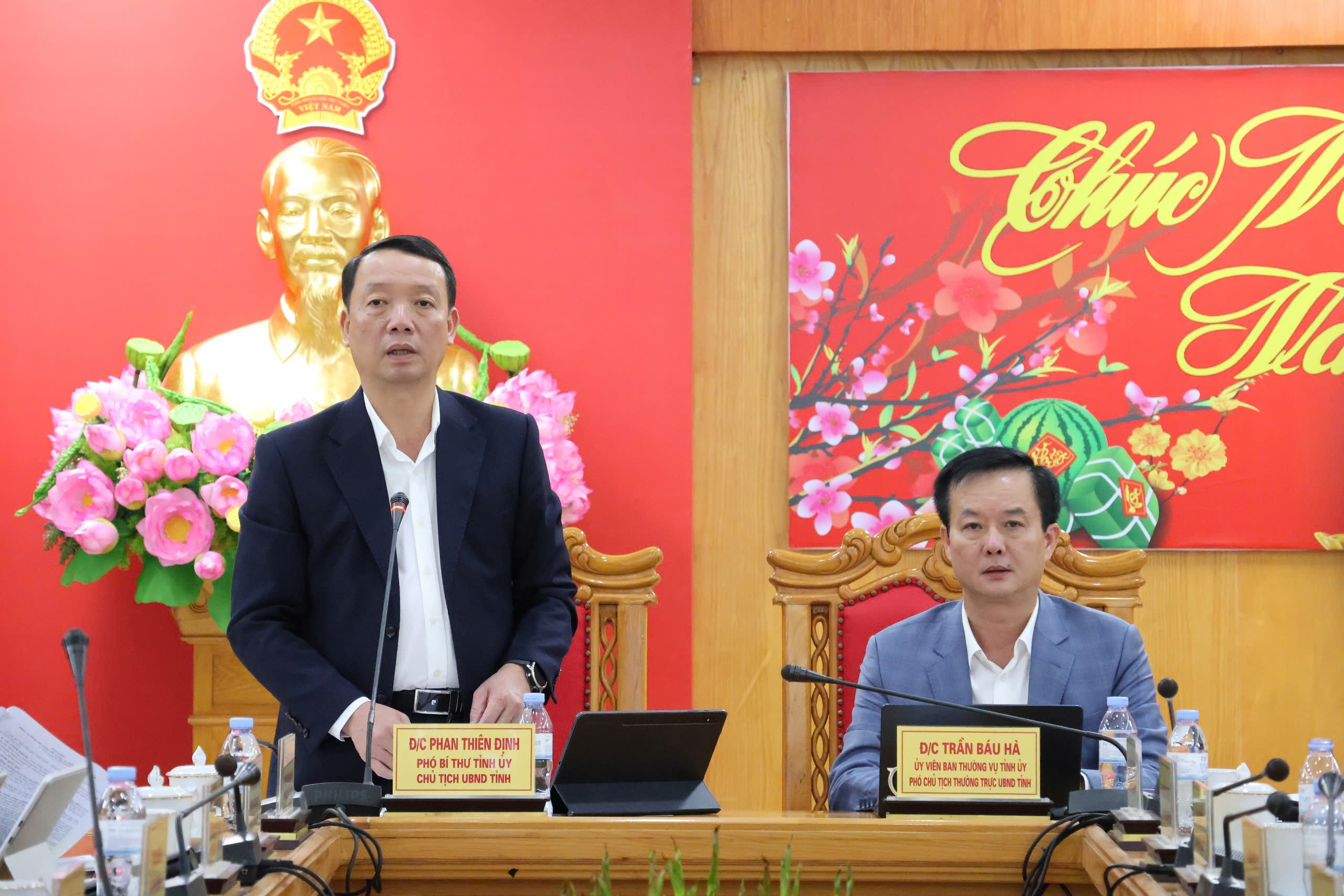 Đồng chí Phan Thiên Định – Phó Bí thư Tỉnh ủy, Chủ tịch UBND tỉnh và đồng chí Trần Báu Hà – Phó Chủ tịch thường trực UBND tỉnh chủ trì hội nghị