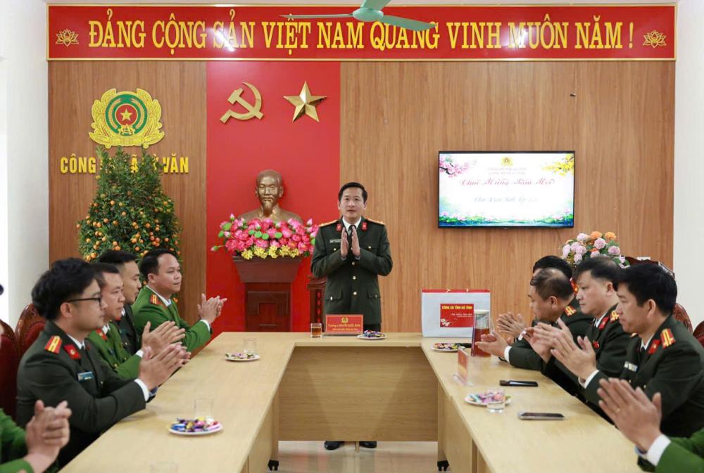 Nhân dịp này, thay mặt lãnh đạo Công an tỉnh, đồng chí Thượng tá Nguyễn Quốc Hùng đã gửi lời chúc mừng năm mới tới toàn thể cán bộ, chiến sĩ Công an các đơn vị, địa phương và gia đình, chúc sức khỏe, an khang, hoàn thành xuất sắc mọi nhiệm vụ được giao, góp phần giữ vững an ninh trật tự trên địa bàn.