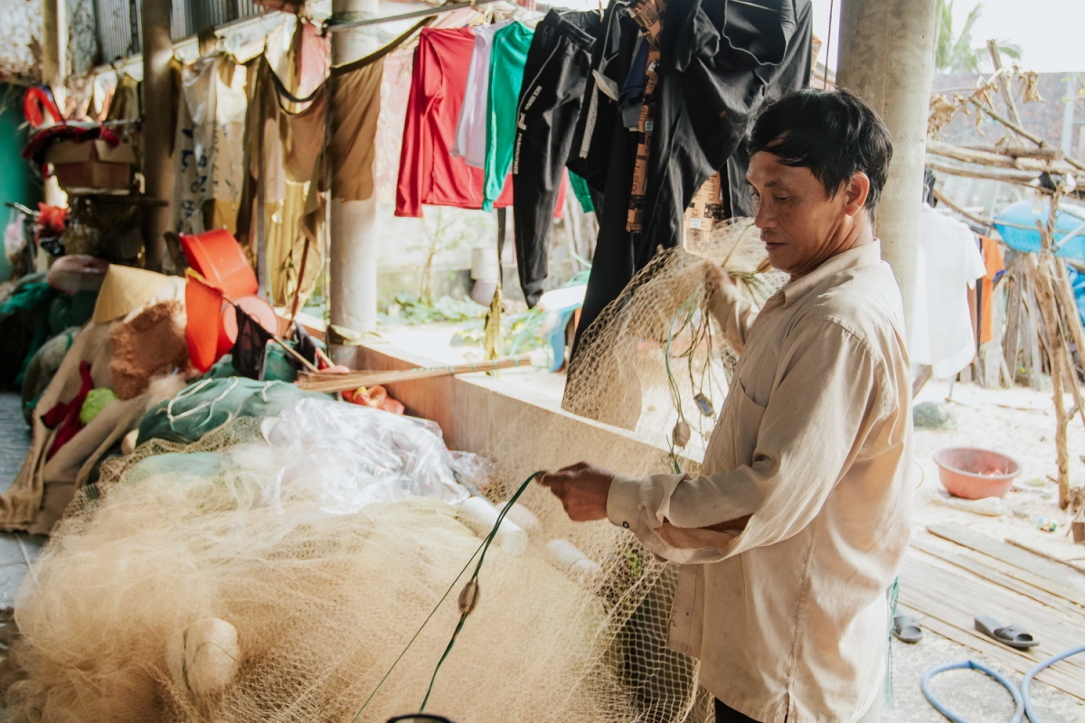 Hàng ngày, cựu binh Gạc Ma Hồ Văn Ba cùng chiếc thuyền câu mực mưu sinh qua ngày.