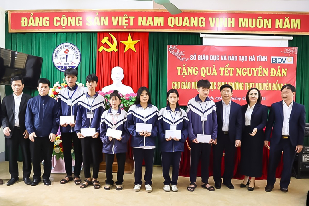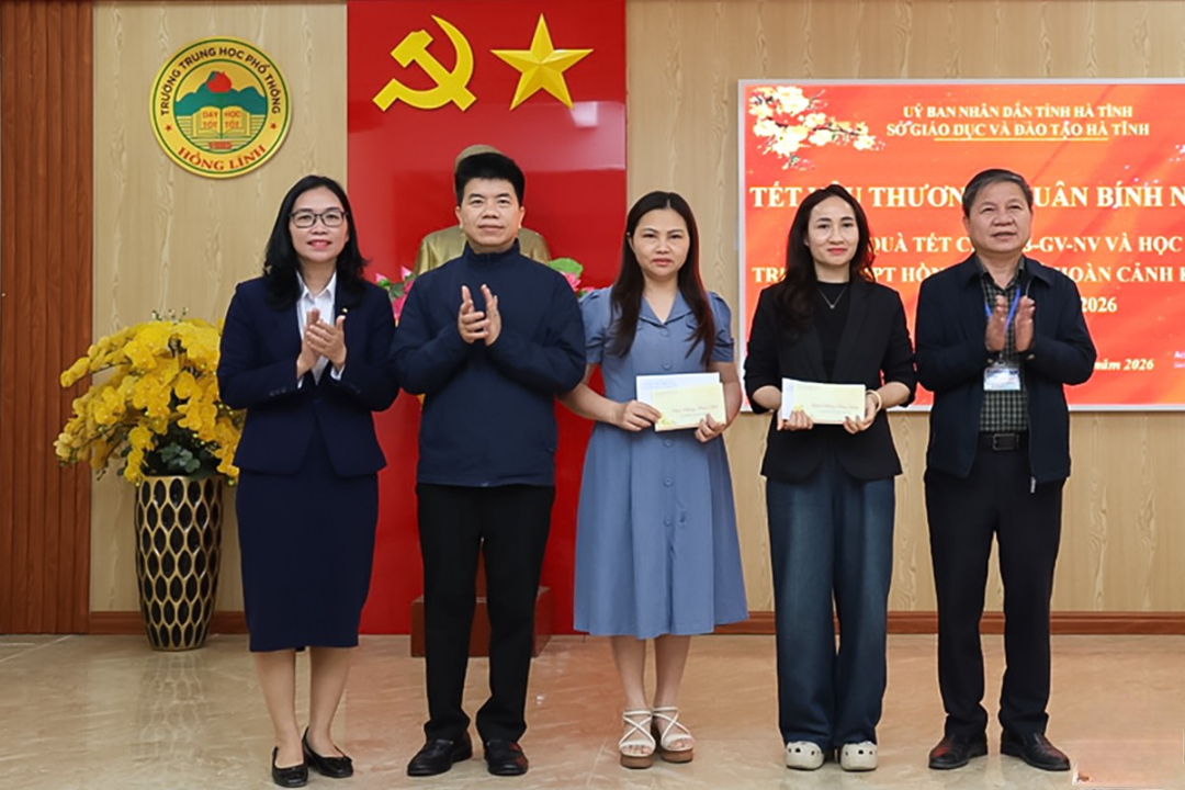 Sáng 11/2, Sở GD&ĐT Hà Tĩnh phối hợp với Ngân hàng BIDV Chi nhánh Hà Tĩnh và VNPT Hà Tĩnh tổ chức trao quà cho cán bộ giáo viên và học sinh có hoàn cảnh đặc biệt khó khăn tại một số trường học trong tỉnh nhân dịp Tết Nguyên đán Bính Ngọ 2026.