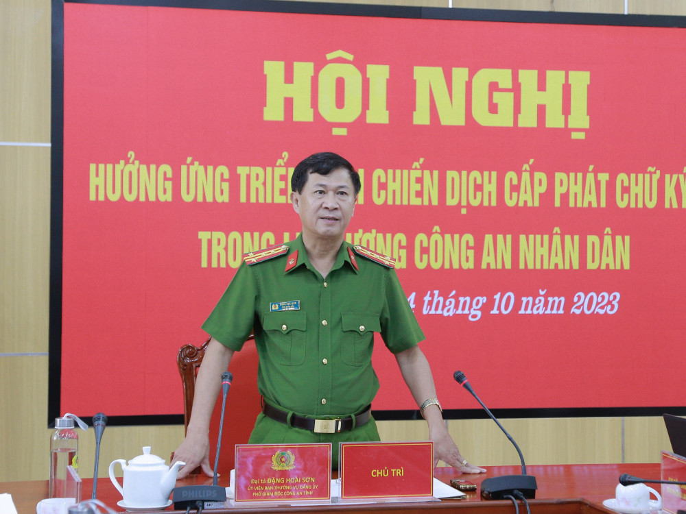 Đại tá Đặng Hoài Sơn, Phó Giám đốc Công an tỉnh phát biểu tại hội nghị phát động