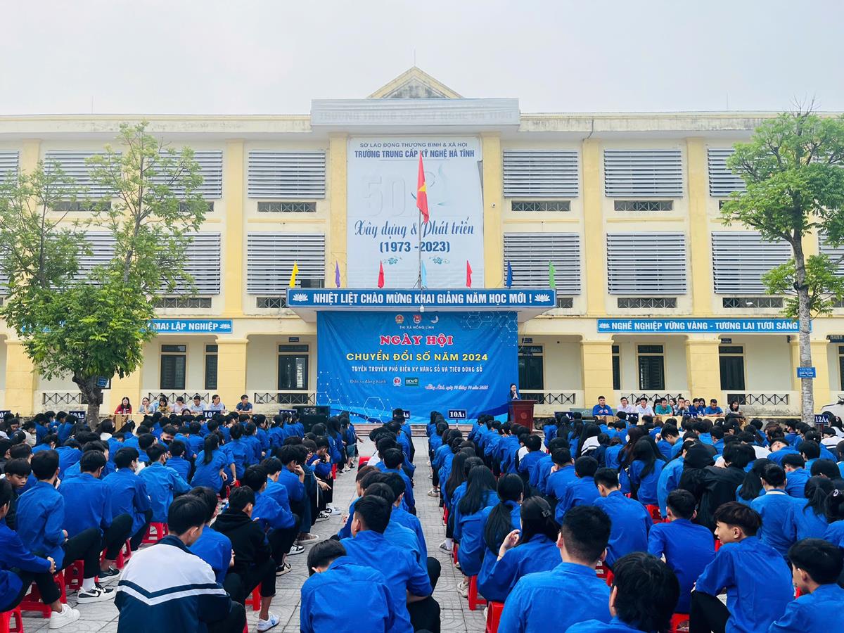 Các bạn ĐVTN trường Trung cấp Kỹ nghệ Hà Tĩnh được hướng dẫn và tham gia trải nghiệm các sản phẩm, dịch vụ số…