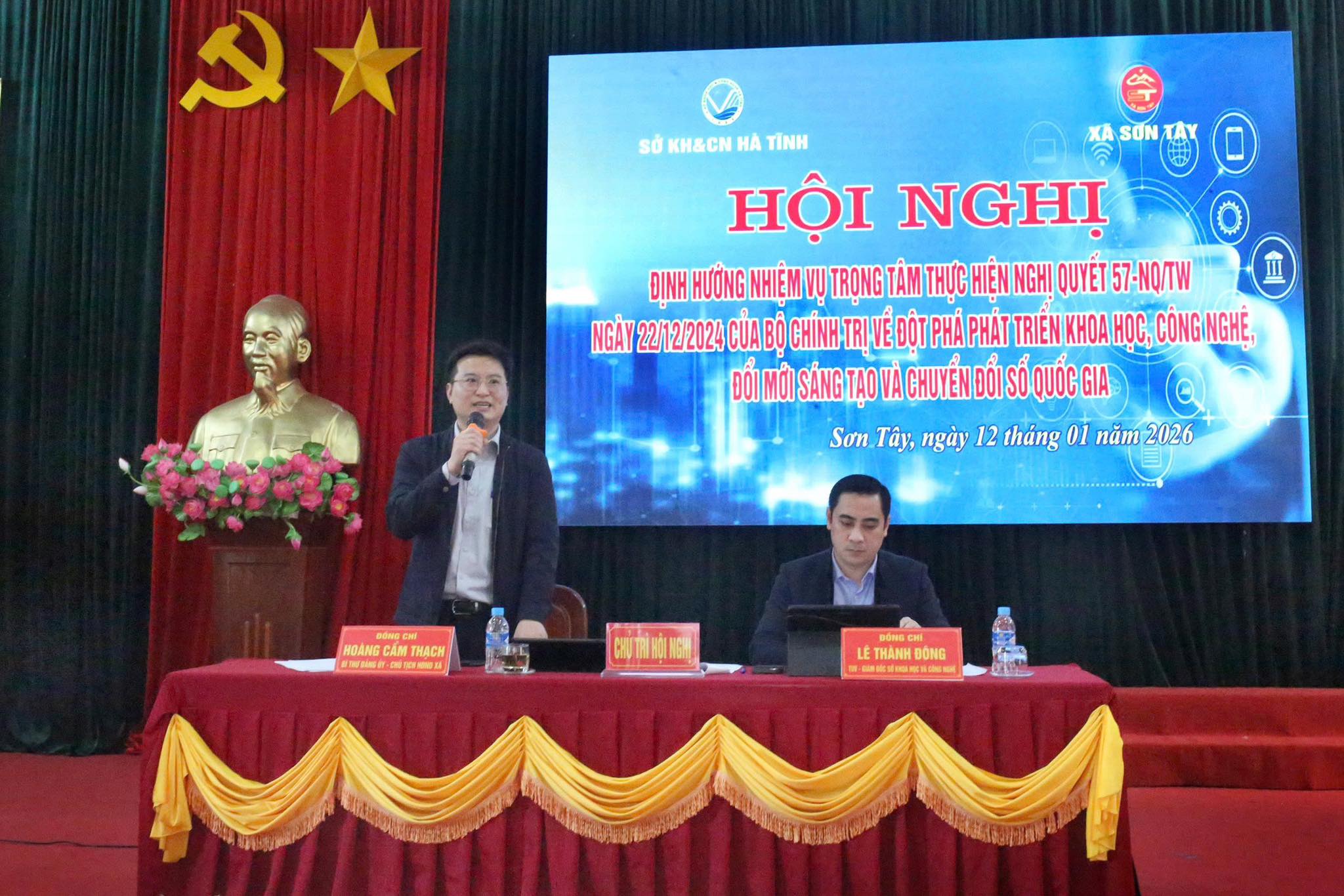 Chiều ngày 12/01/2026, Ủy ban nhân dân xã Sơn Tây đã tổ chức Hội nghị định hướng nhiệm vụ trọng tâm thực hiện Nghị quyết số 57-NQ/TW của Bộ Chính trị về đột phá phát triển khoa học, công nghệ, đổi mới sáng tạo và chuyển đổi số quốc gia. Đây là hoạt động có ý nghĩa quan trọng, thể hiện quyết tâm của cấp ủy, chính quyền địa phương trong việc đưa khoa học, công nghệ và chuyển đổi số trở thành động lực thúc đẩy phát triển bền vững.